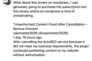 Megjelent egy teljesen abszurd értékelés a WordPress plugin marketplace-en az AutoSEO-ról.