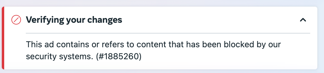 Tegnap reggel a Facebook úgy döntött, hogy betesz nekem. Nem szólt előre. Elkezdtem hibaüzeneteket kapni Facebook Ads-en, amikor új kampányokat akartam indítani. Ez elég ijesztő volt, mert volt már dolgom ilyennel – ha a Facebook egyszer „berág” rád, simán el tudja lehetetleníteni az egész hirdetési fiókodat.